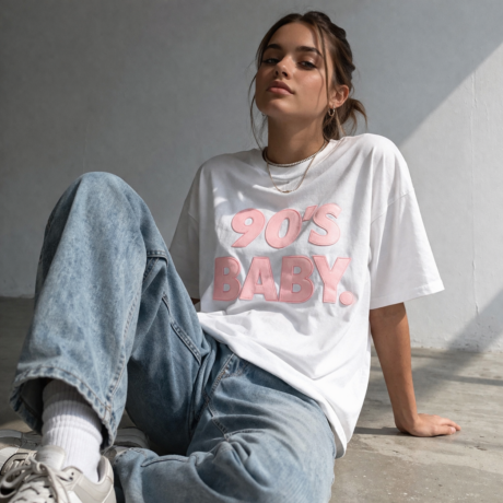 Vintage Washed Cartoon Couple T-Shirt | Grey 90s