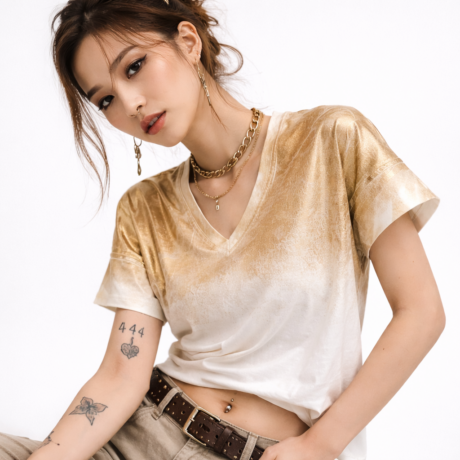 Gold Foil V-Neck T-Shirt | Y2K Gradient