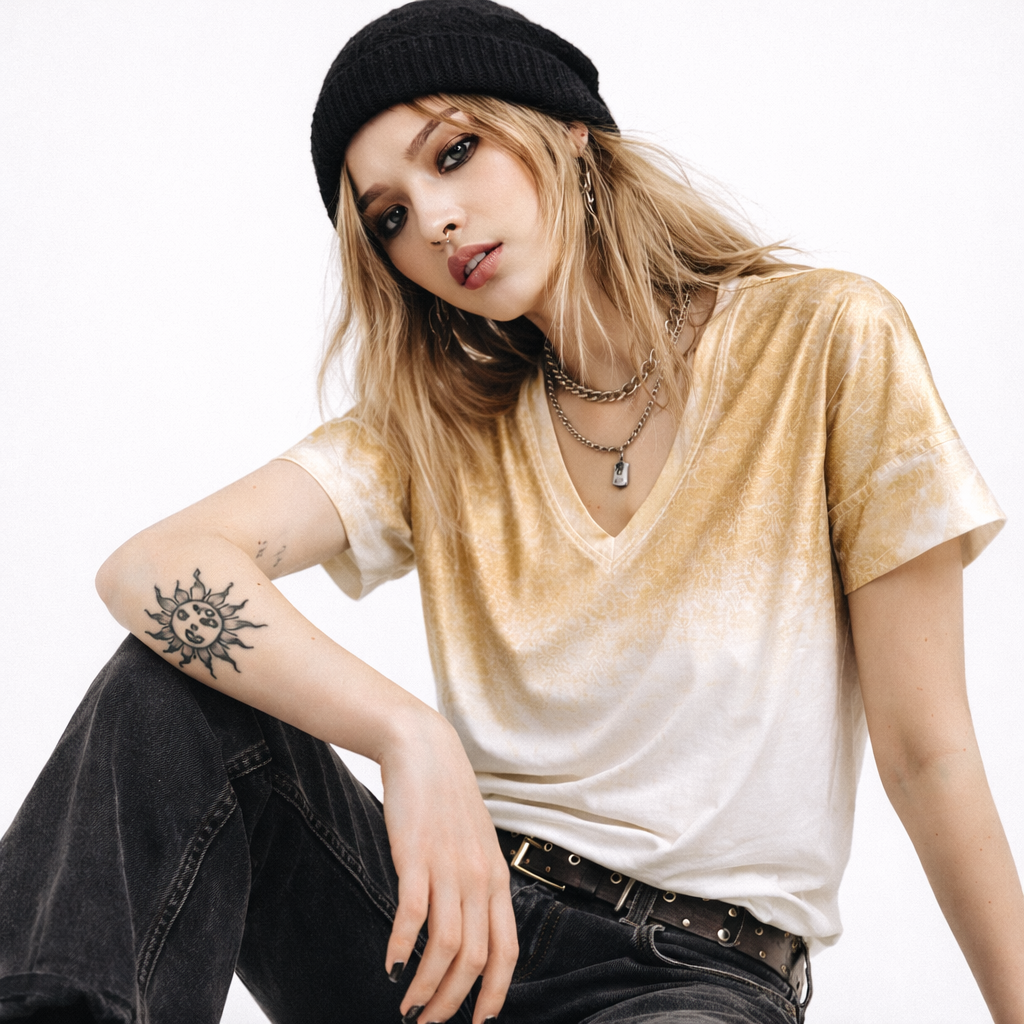 • Gold Foil V-Neck T-Shirt | Y2K Gradient