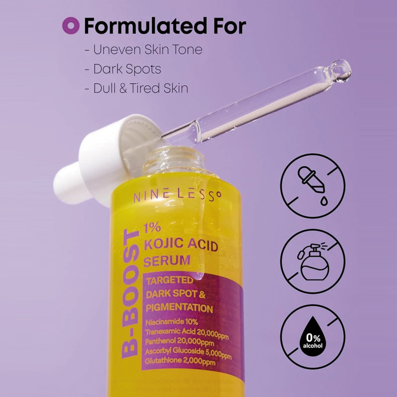 Το Nine Less B-Boost Kojic Acid Serum είναι brightening serum που βοηθά στη μείωση των δυσχρωμιών και στη βελτίωση του ανομοιόμορφου τόνου της επιδερμίδας.